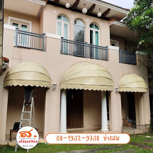 รับผลิต สั่งทำและติดตั้งกันสาดผ้าใบทรงยุโรป หลังคาสไตล์ยุโรป กันสาดผ้าใบทรงโดม นนทบุรี โดย ร้านช่างสม กันสาดผ้าใบ (ส การช่าง) และทีมช่างติดผ้าใบที่มีประสบการณ์ทำกันสาดผ้าใบ และงานโครงหลังคาเหล็ก มานานกว่า 30 ปี